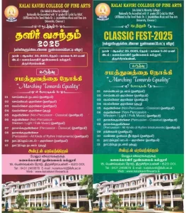 We are pleased to announce that the inter-school competitions – Thalir Vasantham and inter-college competitions- Classic Fest, will be hosted by Kalai Kaviri College